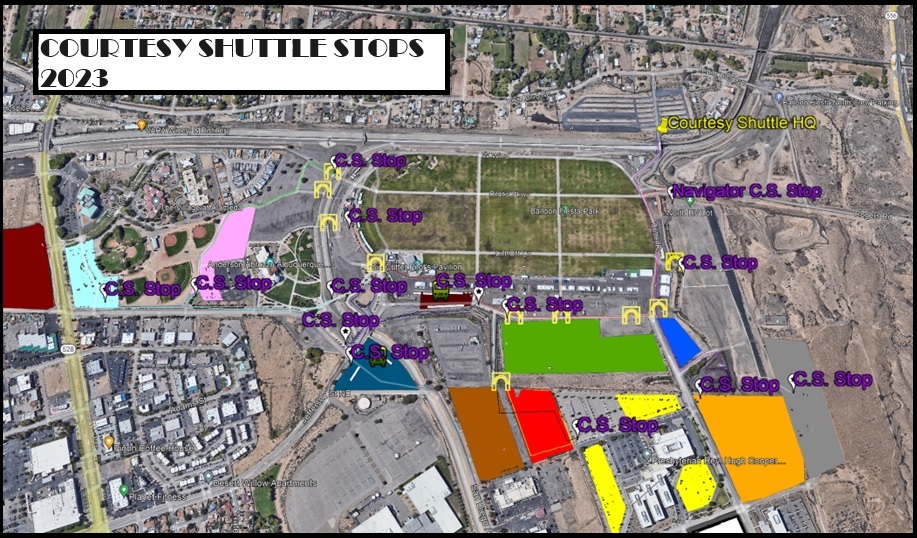 Our Courtesy Shuttle team is ready to help you any where on the field. The shuttles are signed for their designated routes, so just hop on and our Navigators will get you where you need to be. With stops all over Balloon Fiesta Park, you will catch a ride anywhere!