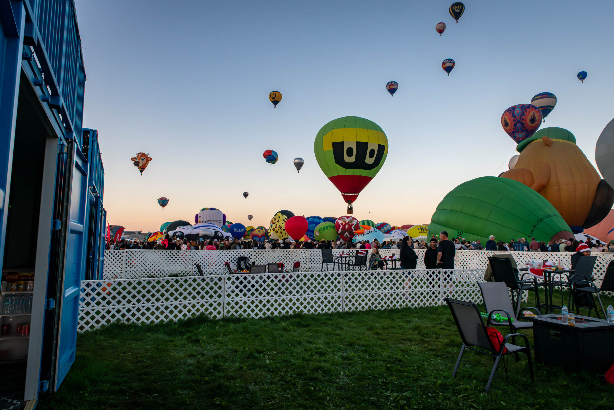 Fiesta Sky Box offers groups an all-inclusive package with specially outfitted shipping containers located at a prime location on the launch field.
